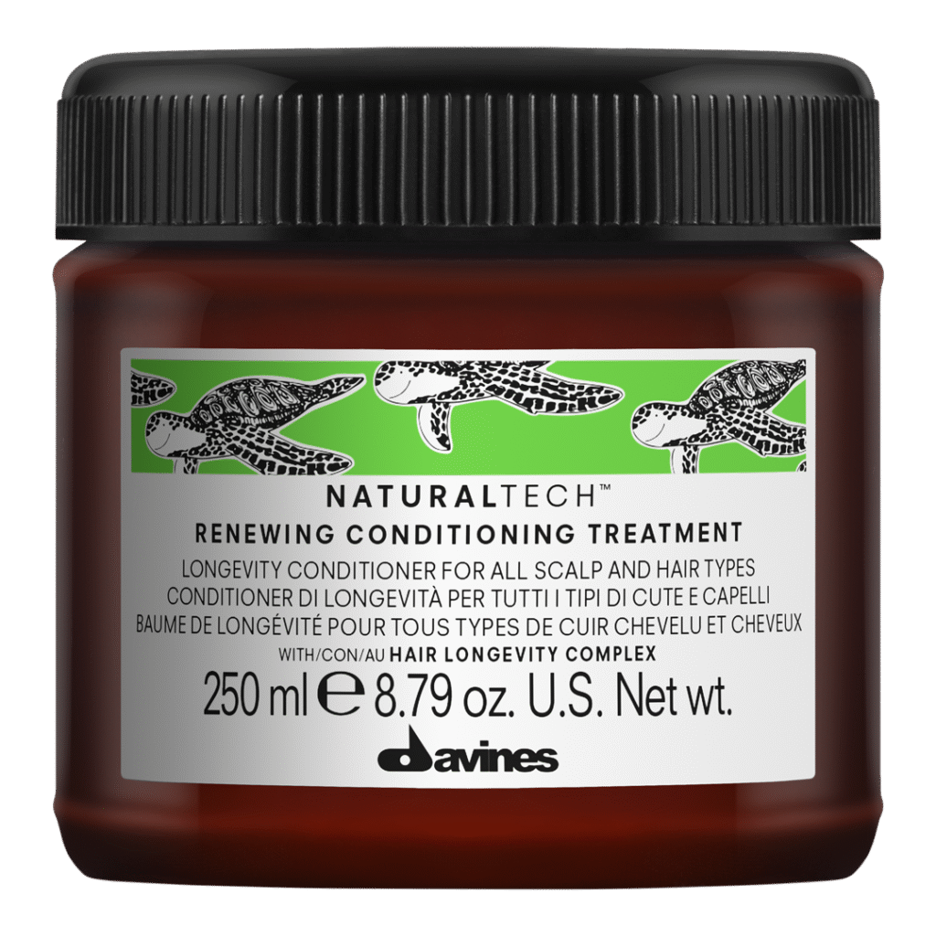 Not all conditioners are designed to be used on both your scalp and hair but the Naturaltech Renewing Conditioning Treatment is. Why is that important? Because our scalps need moisture and balance too. Think of our scalps as an extension of the skin on our faces. You moisturize your face, right? Well, your scalp needs it too. And I know there are those of you out there who worry that you’re scalp is oily and so you don’t use conditioner. But scalp moisture imbalances can actually be contributing to that excess oil production. This conditioner is lightweight and balancing and can help remedy both oily and dry scalps. It nourishes, moisturizes and promotes the wellbeing of scalp and hair.